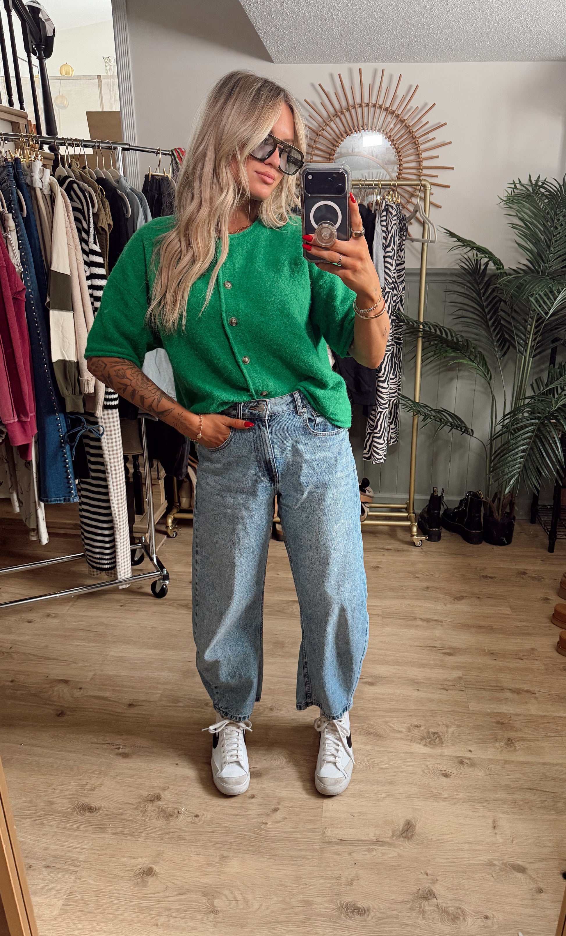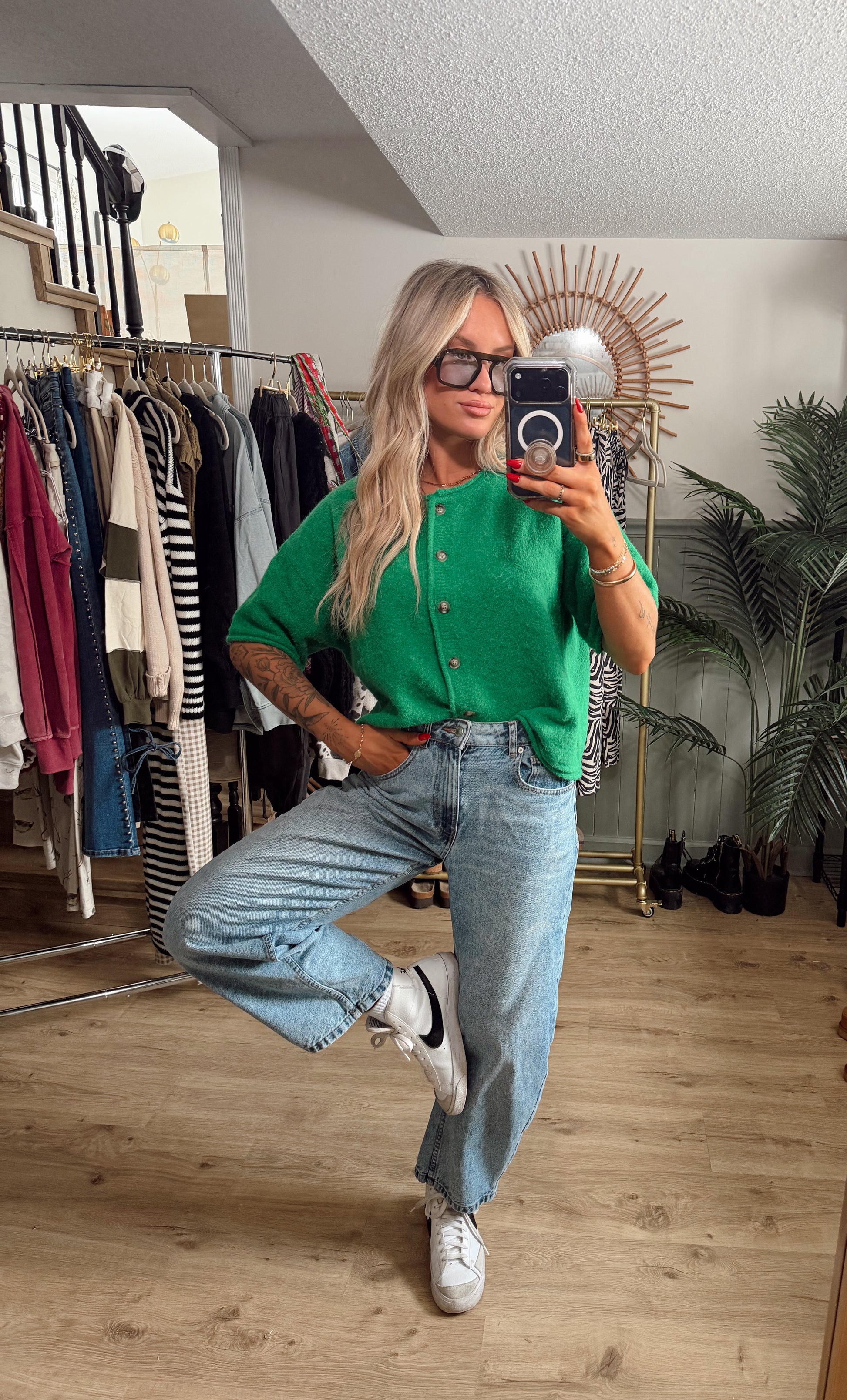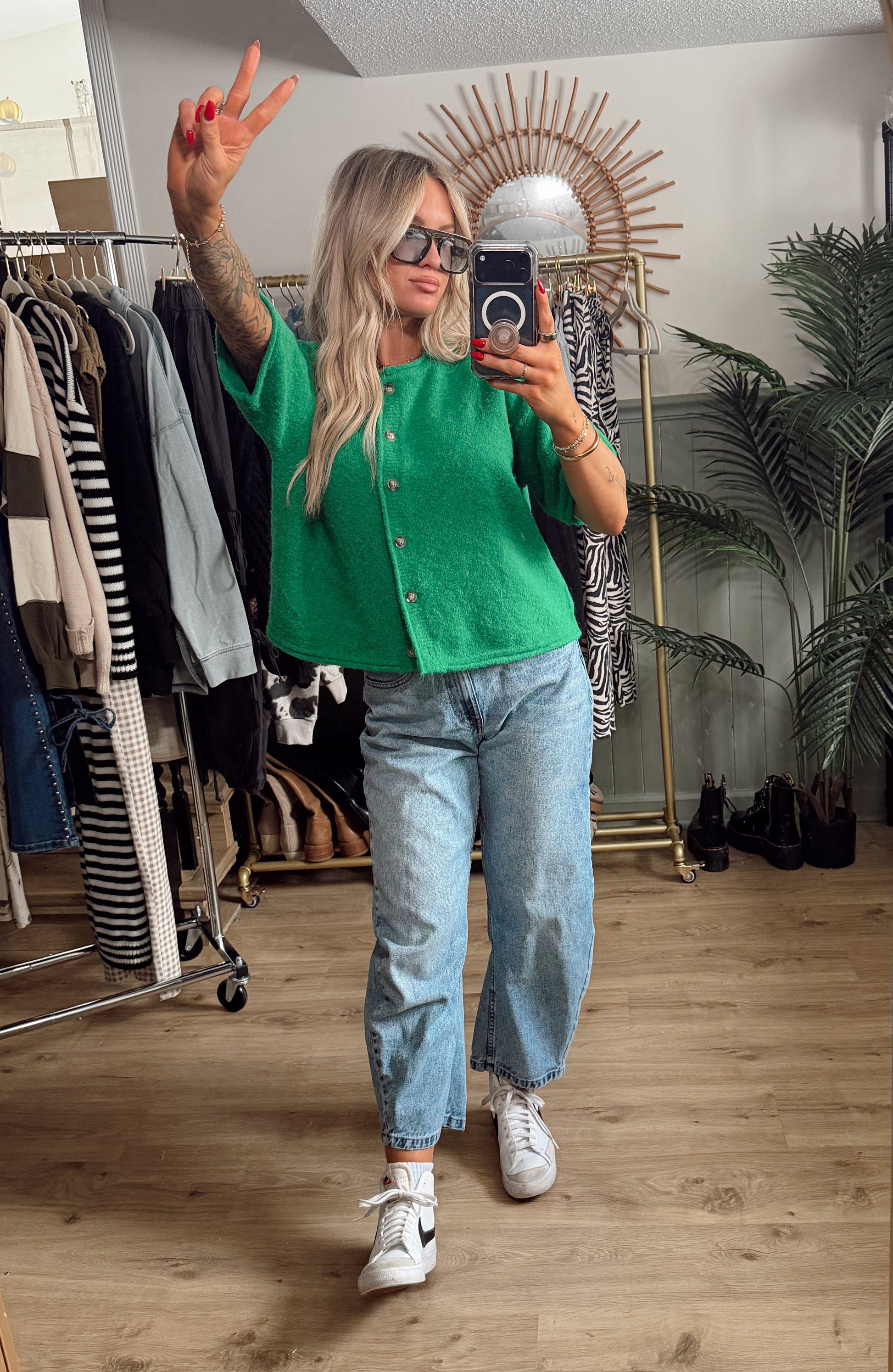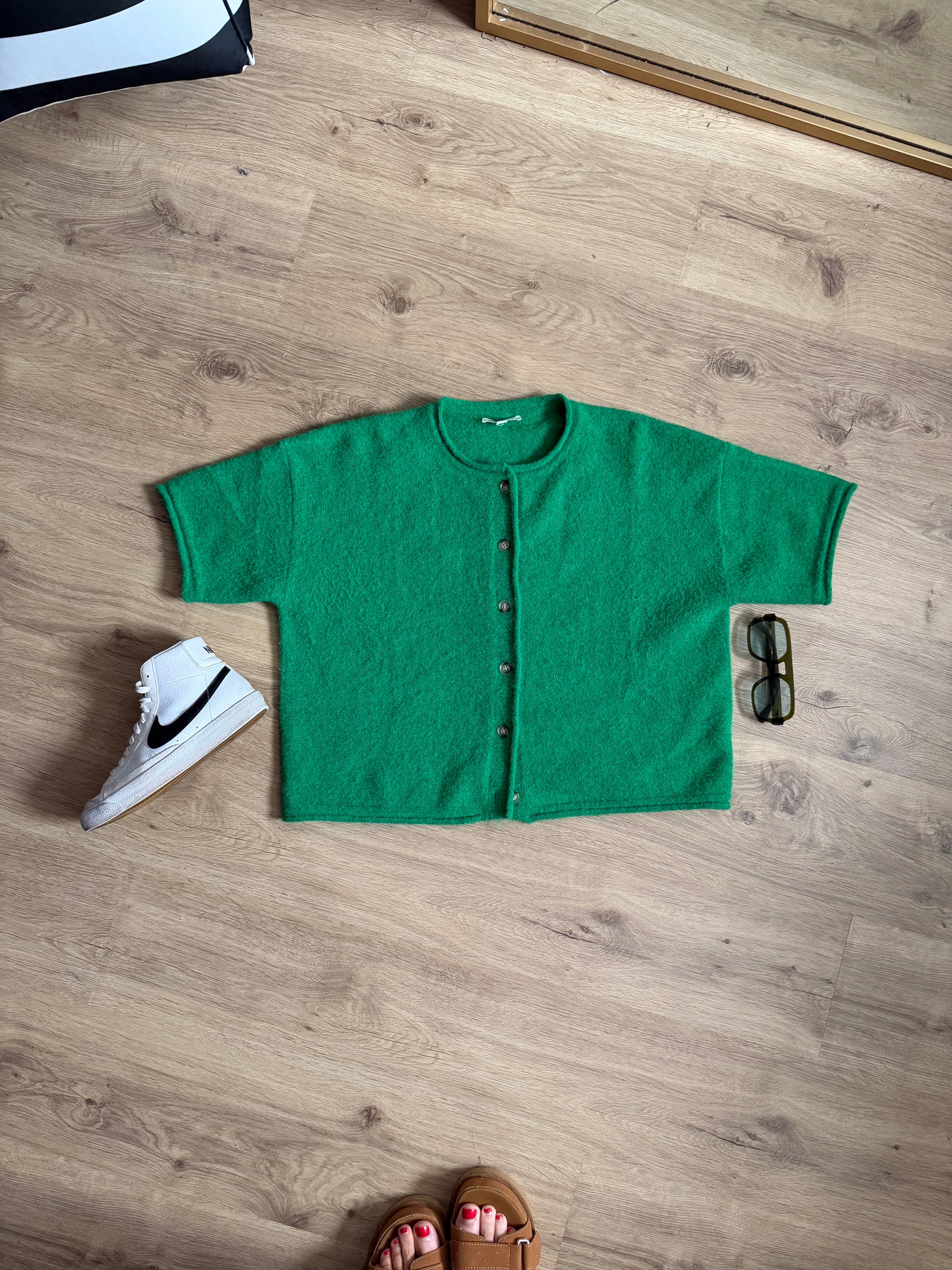 The Lucky Day Cardigan is a short-sleeve, drop-shoulder knit designed for those in-between days when you want something cozy but not heavy. Featuring functional front buttons and a relaxed, easy fit, this piece layers perfectly now and carries straight into spring.