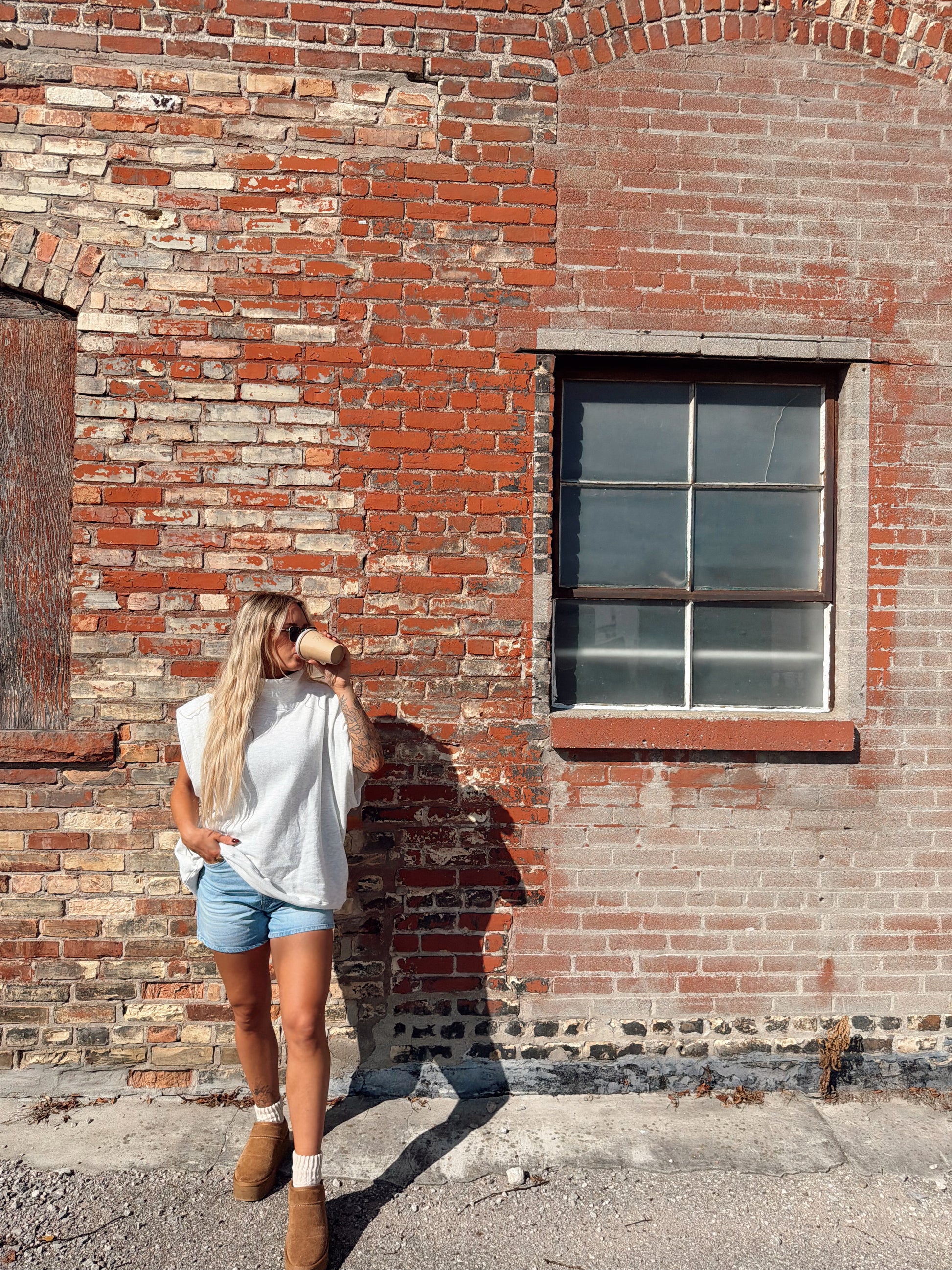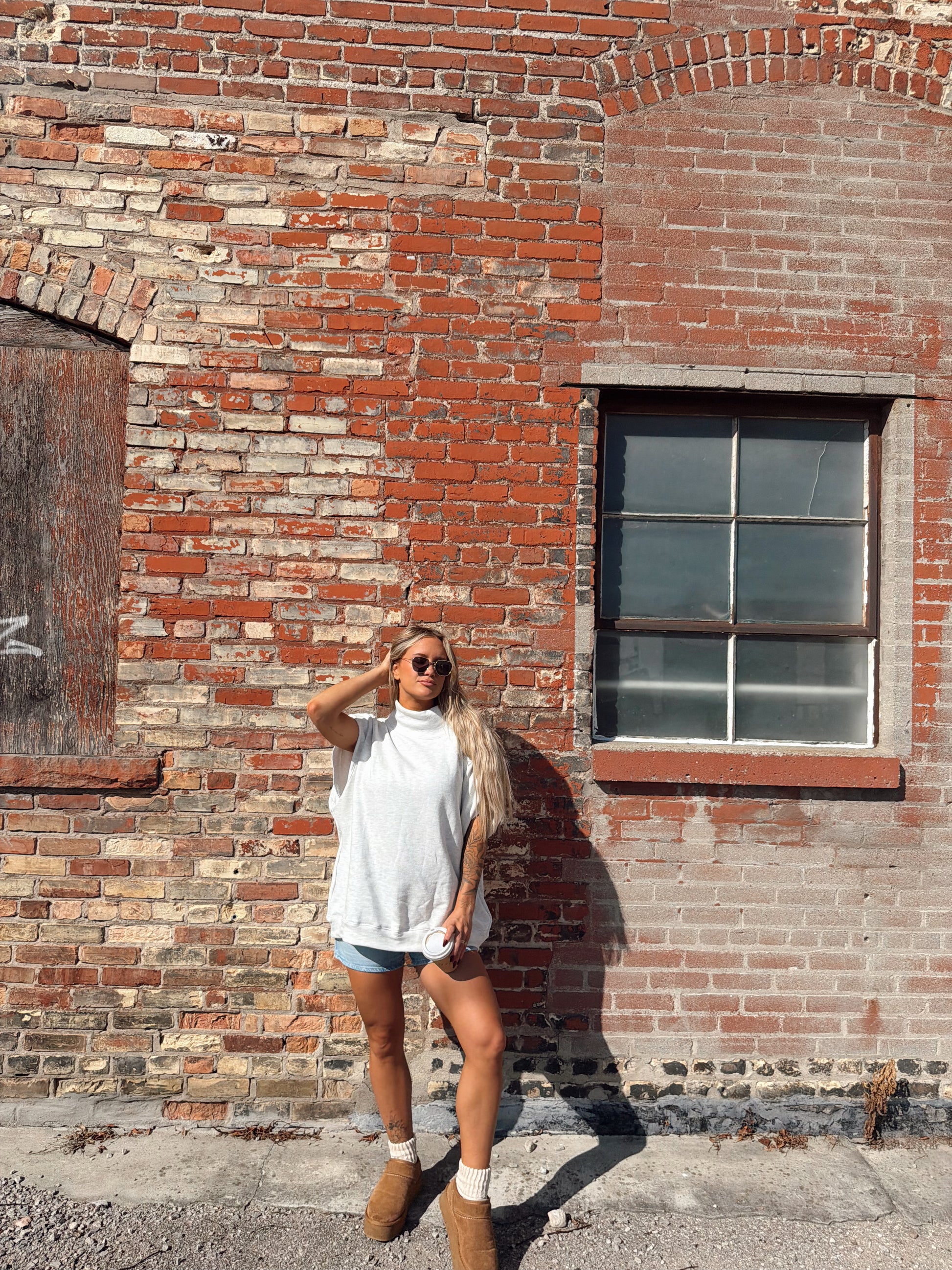 Introducing our Morning Pour Muscle Sweater, the ultimate blend of comfort and style. With its very oversized fit, sweatshirt inspired design, and dropped shoulder, this sweater is perfect for a relaxed and effortless look. Complete with a mock neck and side slits at the bottom, it's the perfect balance of cozy and cool.