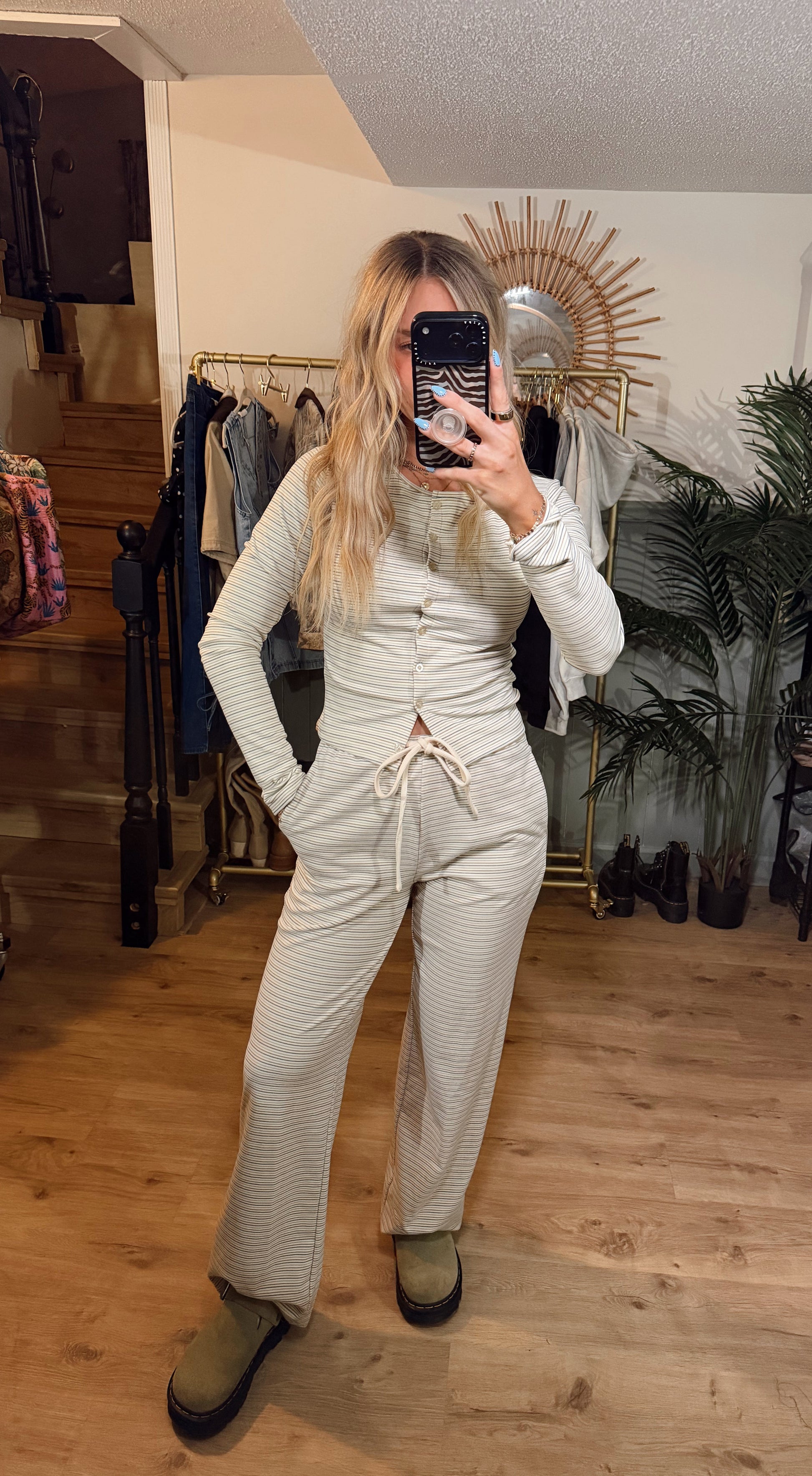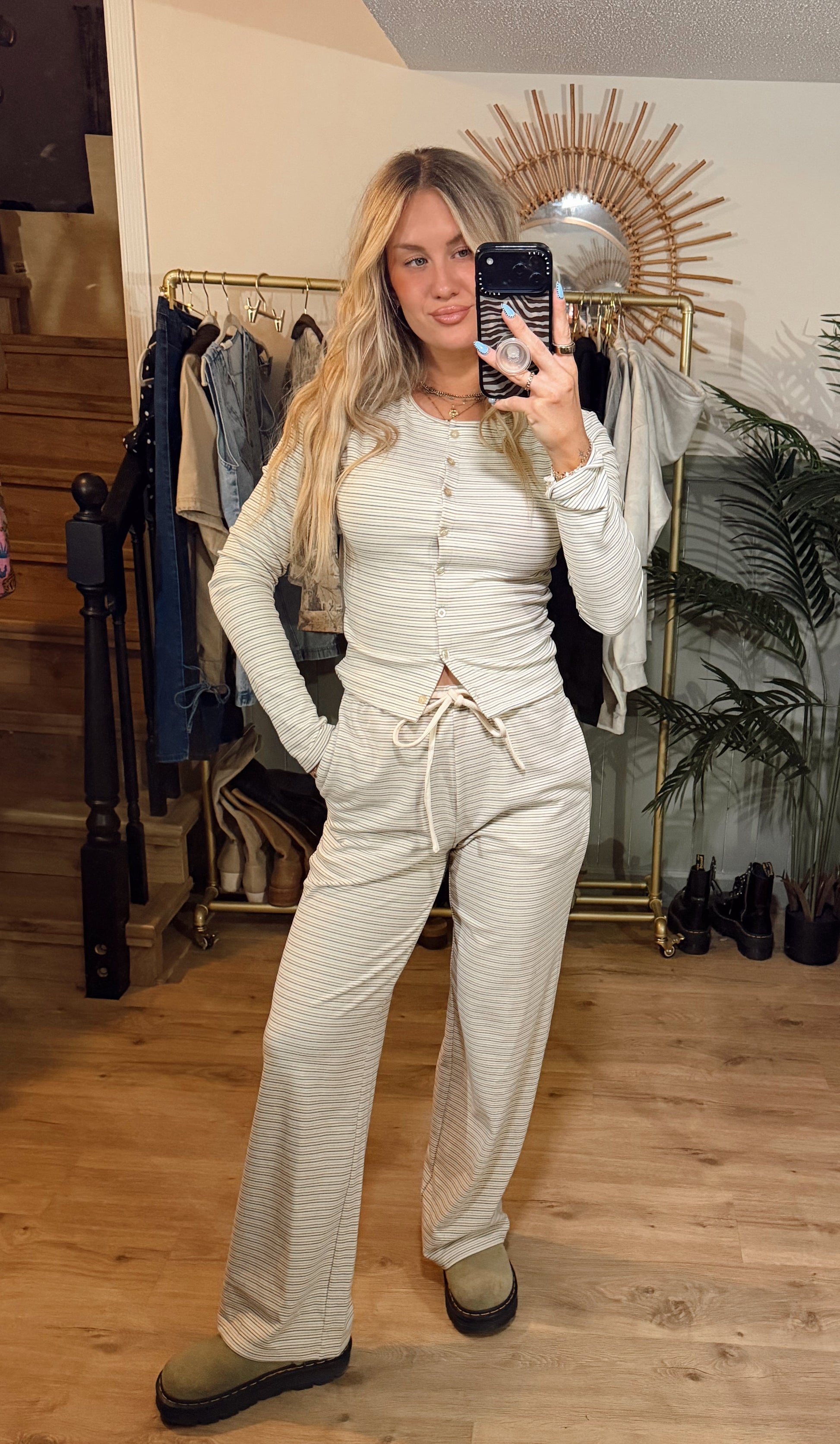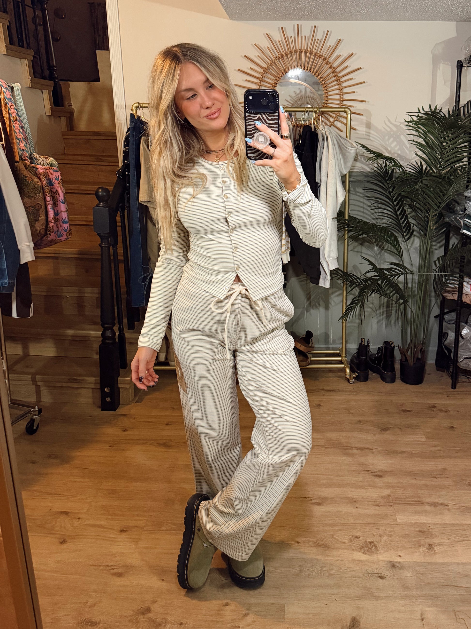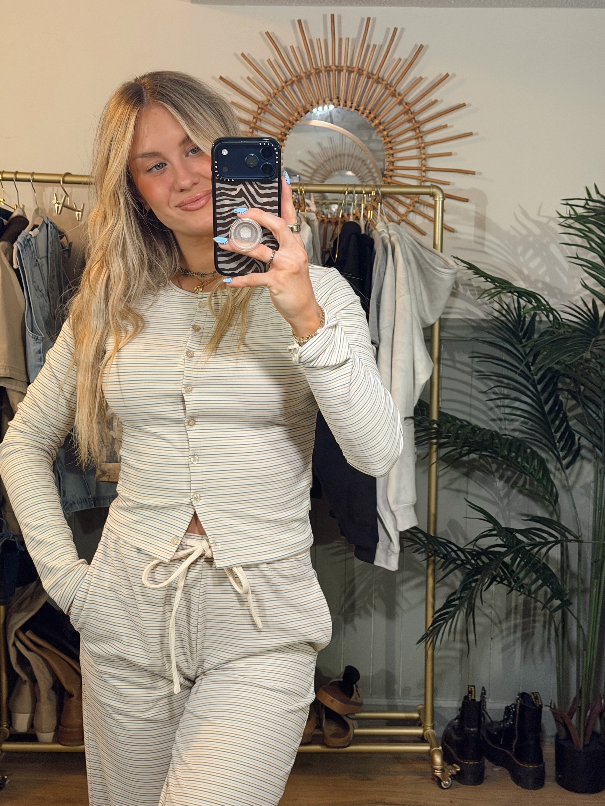 The Sol Stripes Set in vanilla is made from a soft blend that feels cozy, comfortable, and stretchy. Designed for effortless days, this set gives you that relaxed, put-together look with minimal effort.