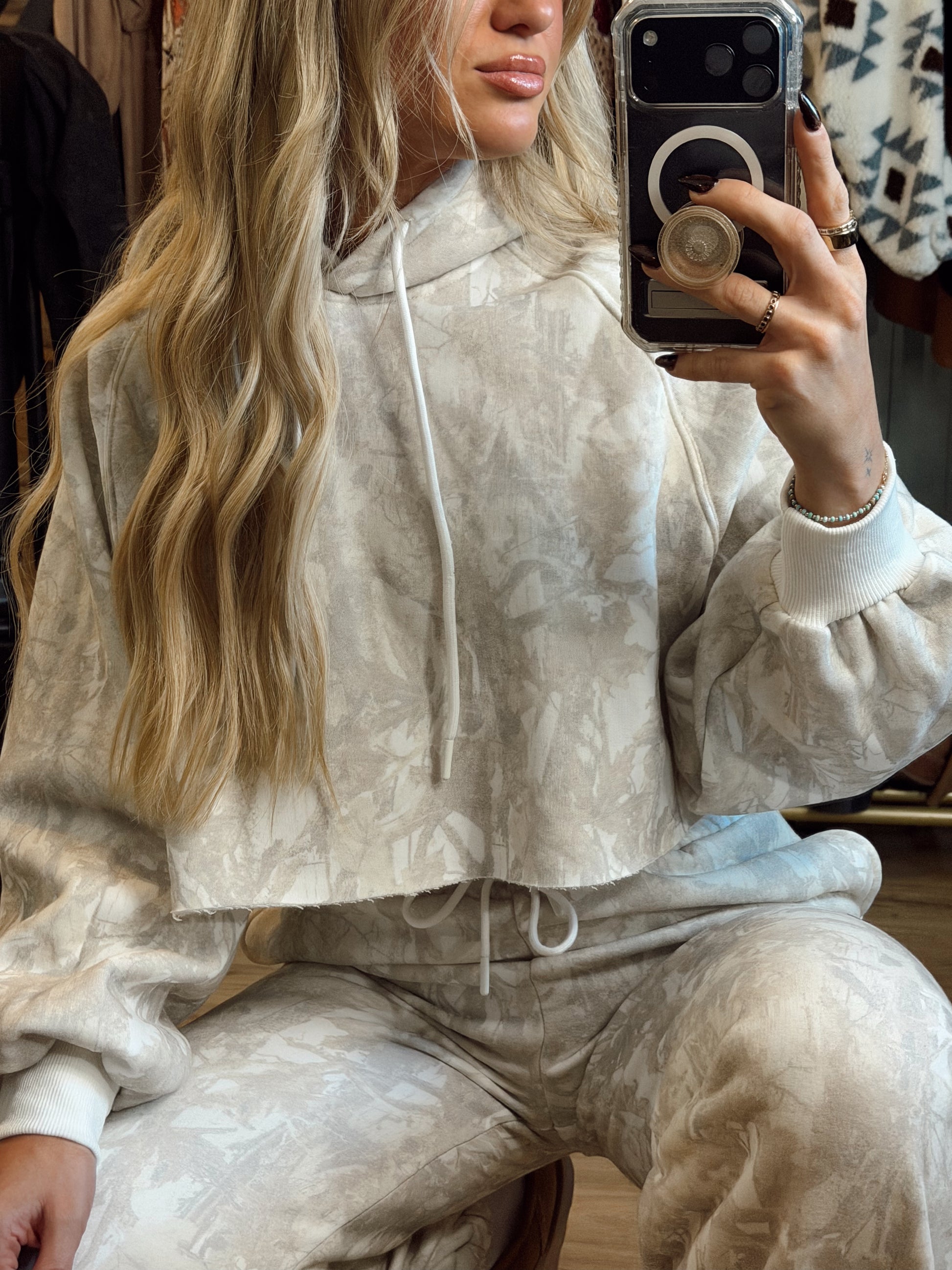 The matching cropped hoodie brings the full vibe together — oversized sleeves, ribbed cuffs, and a drawstring hood for the ultimate laid-back look. Wear it as a set for lounge perfection, or mix and match with cargos, denim, or leggings.